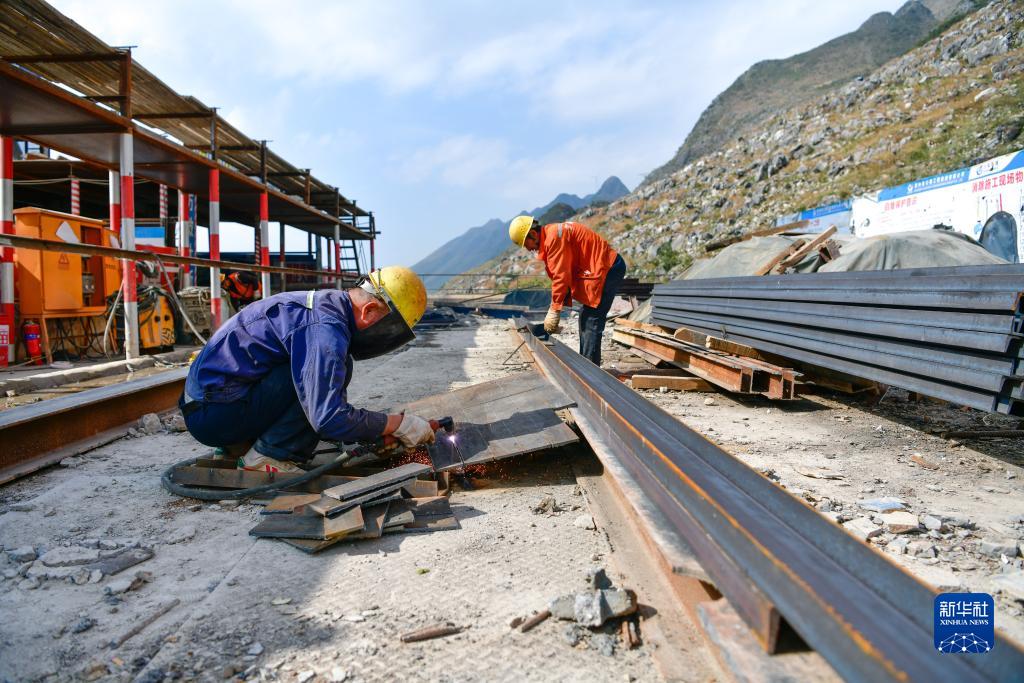 11月7日,工人在贵州六安高速花江峡谷大桥建设现场施工。新华社记者 杨文斌 摄