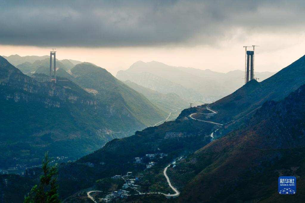 这是11月7日拍摄的贵州六安高速花江峡谷大桥两岸主塔。新华社记者 杨文斌 摄