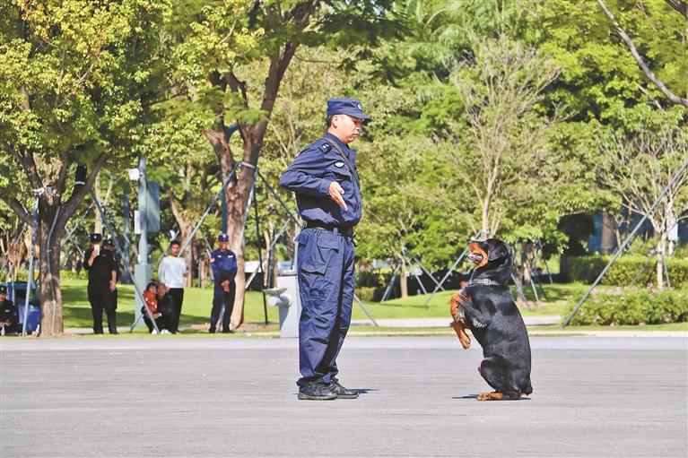 保安员开展单人单犬演练。