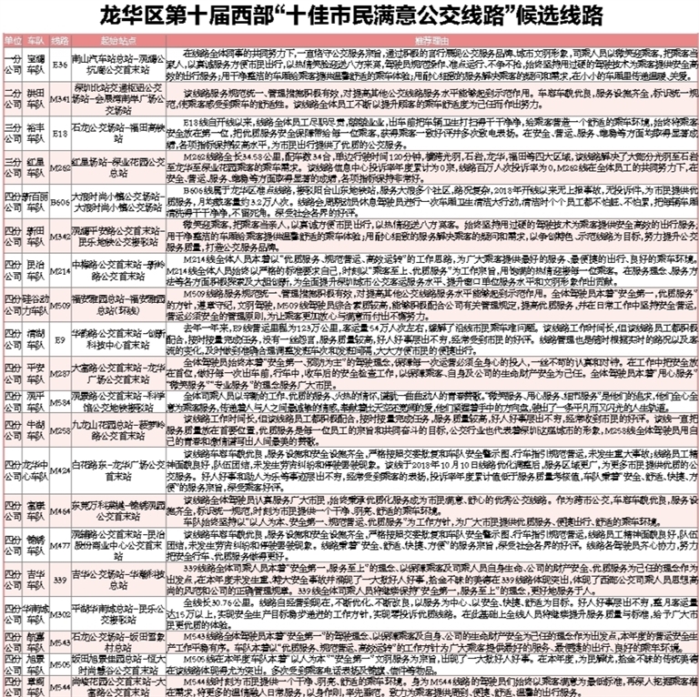 龙华新闻讯(记者 郑思韵 实习生 赖妍沁)公交车是城市文明的流动窗口,为了表彰在创文一线奋斗的公交人,树立典范,今年,由宝安日报社和深圳西部公汽共同举办,市交通运输局龙华管理局指导的龙华区第十届西部“十佳最美公交人”及“十佳市民满意公交线路”评选活动在10月正式启动。