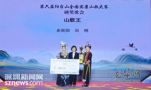 据了解,此次大赛吸引了全国14个省、自治区的280名山歌高手踊跃参与,刷新了山歌赛历届报名人数的最高纪录。在经历了视频初赛、现场复赛等多轮线上线下竞技之后,11月25日晚,突围而出的20组优秀山歌选手在总决赛的舞台上同台飙歌,展开巅峰对决。一首首嘹亮悠扬的山歌响彻阳台山,台下欢呼声、掌声此起彼伏。经过激烈角逐,来自广东梅州的林珈羽,凭借一曲清丽绵长、柔美婉转的《长潭水》斩获观众和评委青睐,而来自云南的董静林8人组带来的《阿噻调》则让人久久沉浸,两组歌手凭借其惊艳嗓音和精彩演绎分别荣获客家山歌组和其他山歌组金奖第一名。而来自贵州黔东南的余秋阳、刘明组合以其高亢嘹亮的声调,清醇甘美的音色荣获本次大赛最高荣誉——“山歌王”称号,并获得6万元的现金奖励。