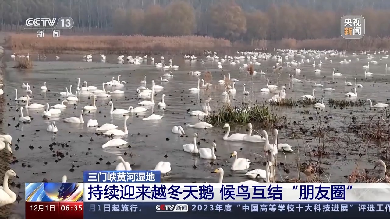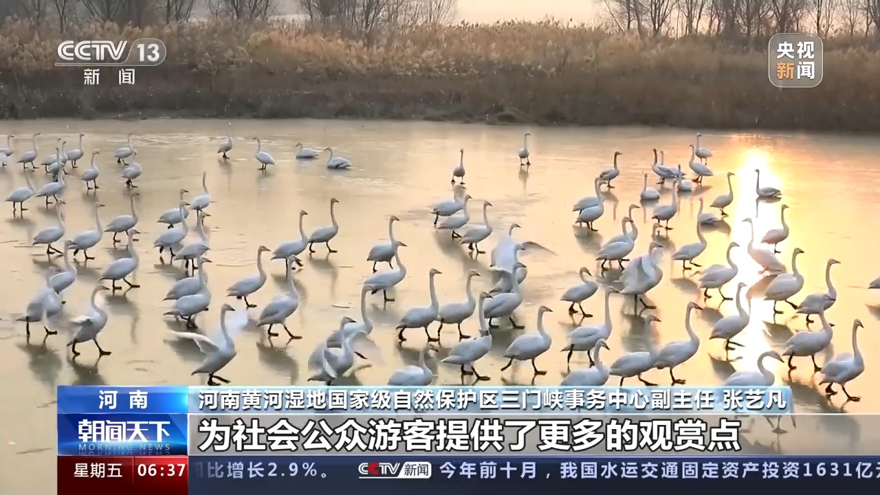 河南黄河湿地国家级自然保护区三门峡事务中心副主任 张艺凡:白天鹅栖息地也有所增加,由之前的四处增加到现在的九处,为社会公众、游客提供了更多的观赏点。