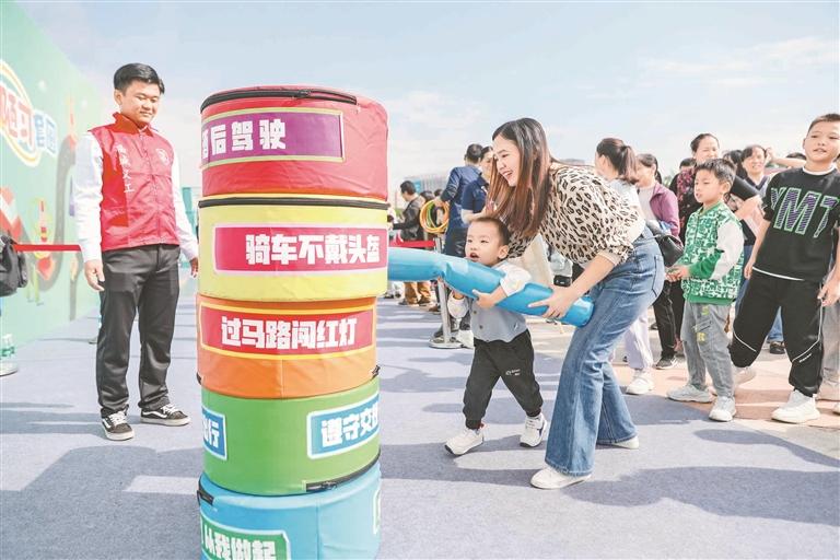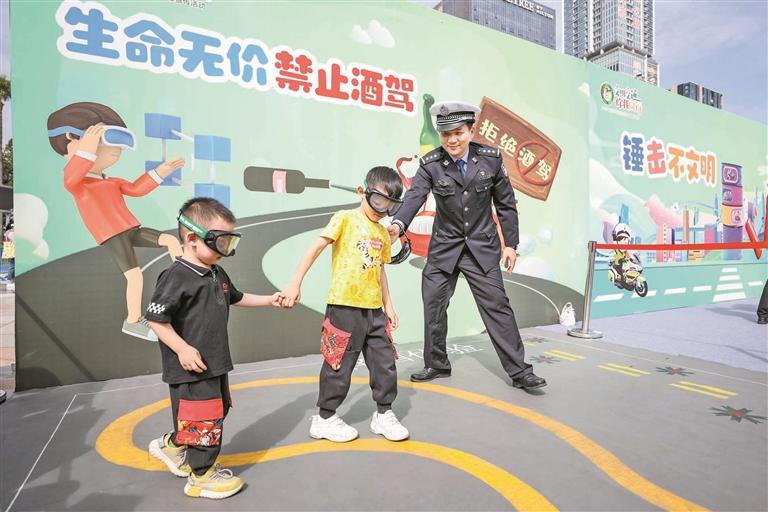 记者在现场看到,在警民互动区,市民朋友们有序与铁骑合照,特别是小朋友们还可以坐在铁骑摩托上,当一回小铁骑。在“小小交通训练营”里,小朋友们驾驶游戏自行车,按照指示箭头方向沿着道路前行,学习文明礼让,遵守交通规则。在“模拟酒驾体验”“大型车辆盲区体验”等交通安全体验环节,在交警的讲解下,市民朋友们沉浸式学习了解出行常见的交通安全风险点。现场还设置了“遵章守法保龄球”“三超投壶”“文明杯小足球”等小游戏,市民在互动游戏中学习掌握交通法规和交通知识。“今天的互动体验非常生动有趣,孩子也玩得十分开心,这样的活动非常有利于帮助孩子树立正确的交通安全观念和意识。”参加活动的家长陈先生说道。