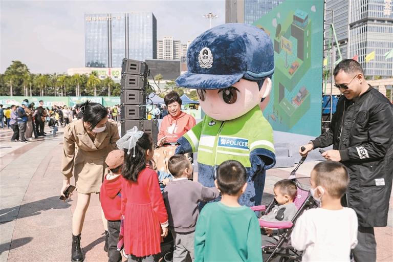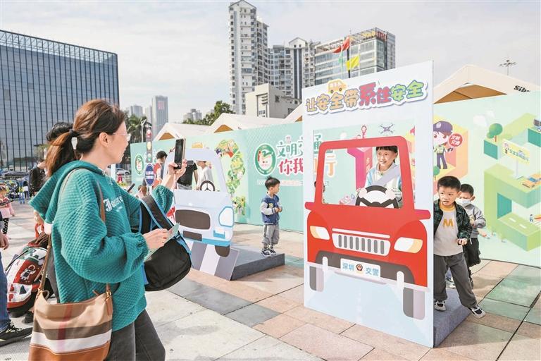 在活动现场,深圳交警以“交通安全露营地”为概念,设置舞台表演区、游戏互动区、警企合作区等区域,安排交通科技装备展示、交通信号灯配时演示等环节,设计大型车辆盲区、“酒驾”行为、交通安全巴士等体验项目,打造集“实景展现+互动体验+沉浸学习”为一体的交通安全文化主题宣传阵地。