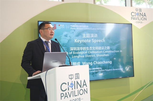 12月3日上午,第28届联合国气候变化大会(COP28)“中国角”举行“气候影视公益传播”边会,联合国前副秘书长刘振民为活动致辞。作为粤港澳大湾区生态文明建设的典型范例,龙华代表团受邀参加边会并发表主题演讲。