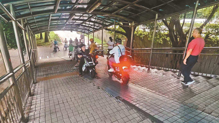 据了解,民乐立交人行天桥建于2008年,横跨梅观路,与梅坂大道平行,是民乐片区7万居民步行、骑行通过梅观路的主要通道,日均通行量约1万人次。由于建造时间早,天桥陆续出现桥面瓷砖破损、顶棚材料脱落等问题,给居民出行带来不便。