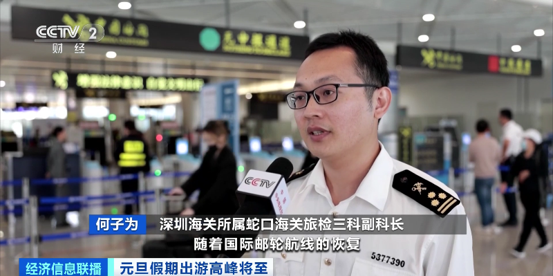 深圳海关所属蛇口海关旅检三科副科长 何子为:随着国际邮轮航线的恢复,旅客量有望迎来大幅增长。我们将进一步提升旅客通关体验,助力国际邮轮旅游加快恢复。