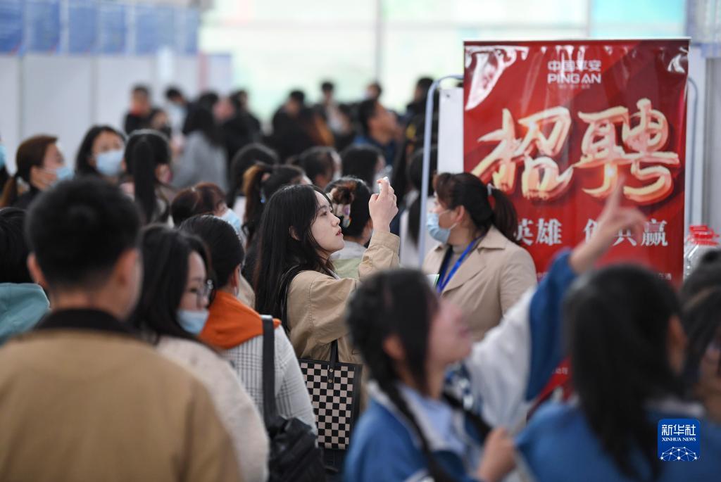求职者在“职引未来”2023年全国大中城市巡回招聘(银川站)活动现场查看岗位信息(2023年4月21日摄)。 新华社记者 冯开华 摄