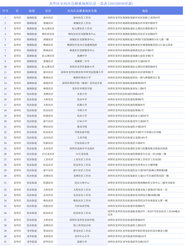 深圳市气象台2023年12月21日16时00分将全市寒冷黄色预警信号升级为橙色,22日我市最低气温降至5℃以下。为积极应对寒冷天气,切实保障人民群众生命财产安全,龙华区108处室内应急避难场所已全部开放,凡是有防寒保暖需求的人,都可以前往寻求帮助。