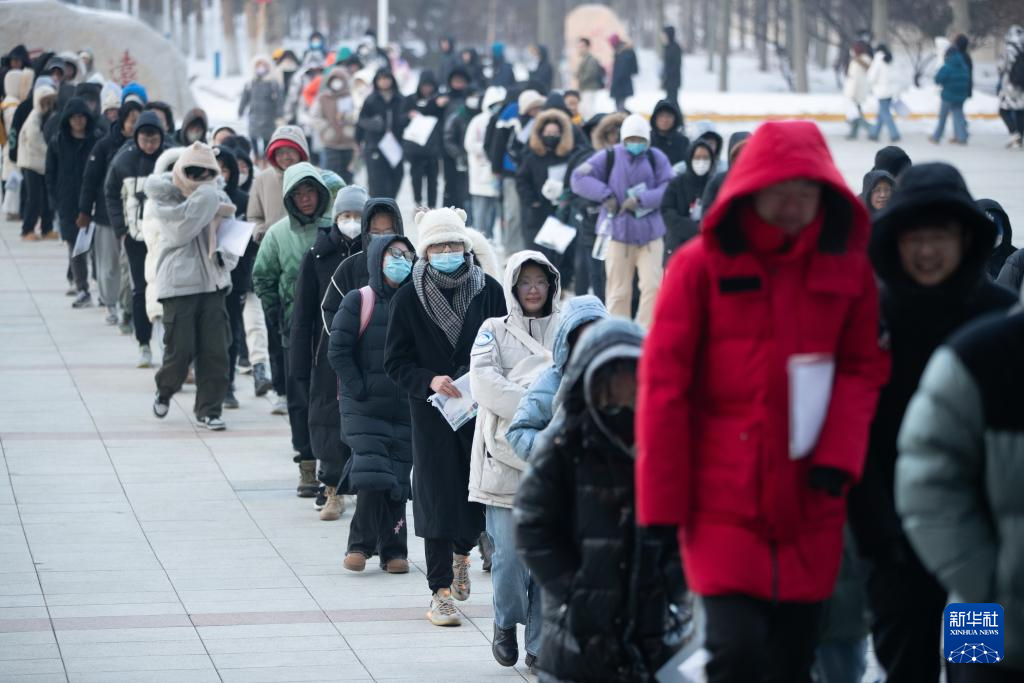 12月23日,在黑龙江省哈尔滨市,考生在哈尔滨理工大学考点排队进入考场。