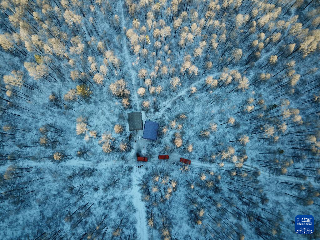 这是12月24日在黑龙江省漠河市北极镇拍摄的北极村周边的一处漠河林场作业点(无人机照片)。新华社记者 王鹤 摄