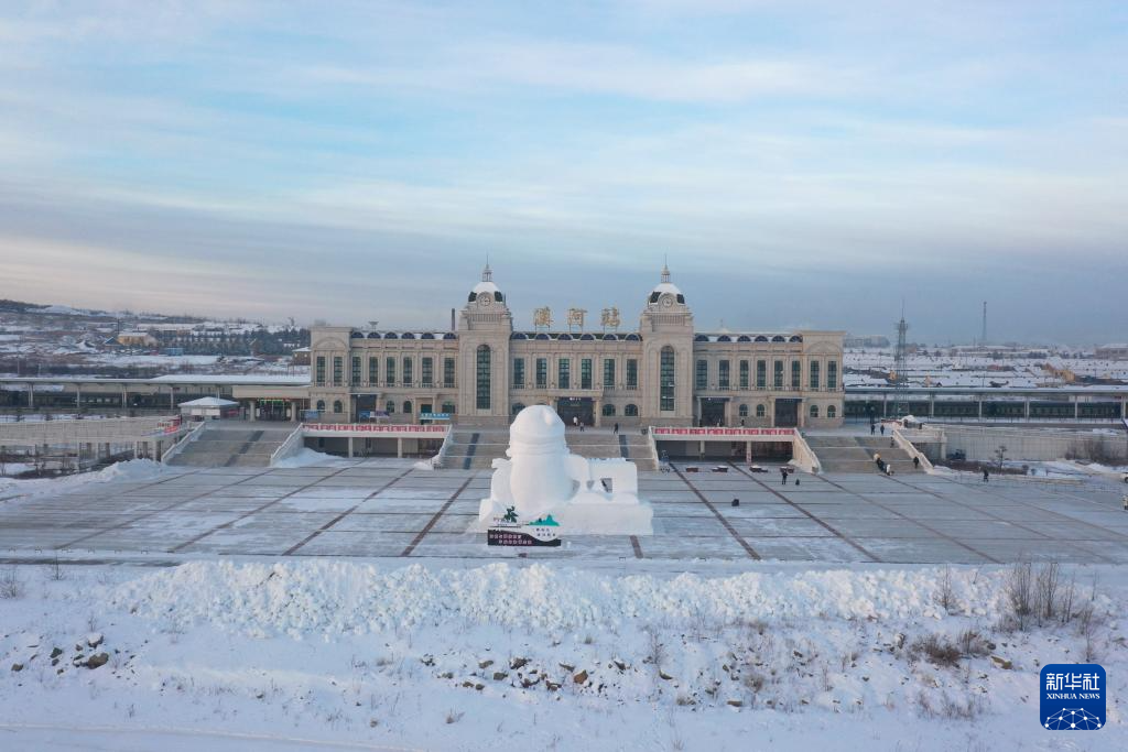 这是12月20日拍摄的漠河火车站(无人机照片)。新华社记者 石枫 摄