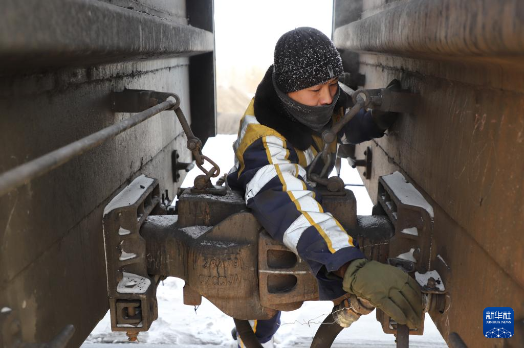 12月25日,在中国铁路哈尔滨局加格达奇车务段漠河站,调车长在工作。新华社记者 金地 摄