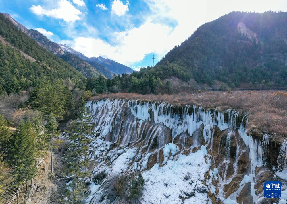 这是1月4日在四川省九寨沟风景名胜区拍摄的诺日朗瀑布形成的冰瀑景观(无人机照片)。