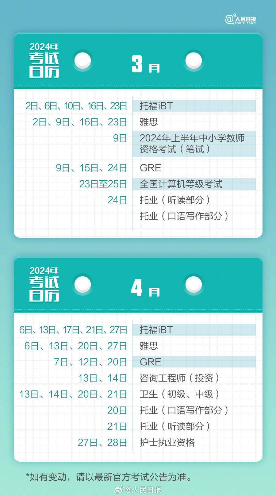 2024年已过去20多天,你的学习考试计划开始了吗?教师资格考试、计算机等级考试、注册会计师、法律职业资格……提前计划,不留遗憾,为目标努力起来!收好2024考试日历↓↓一起加油!