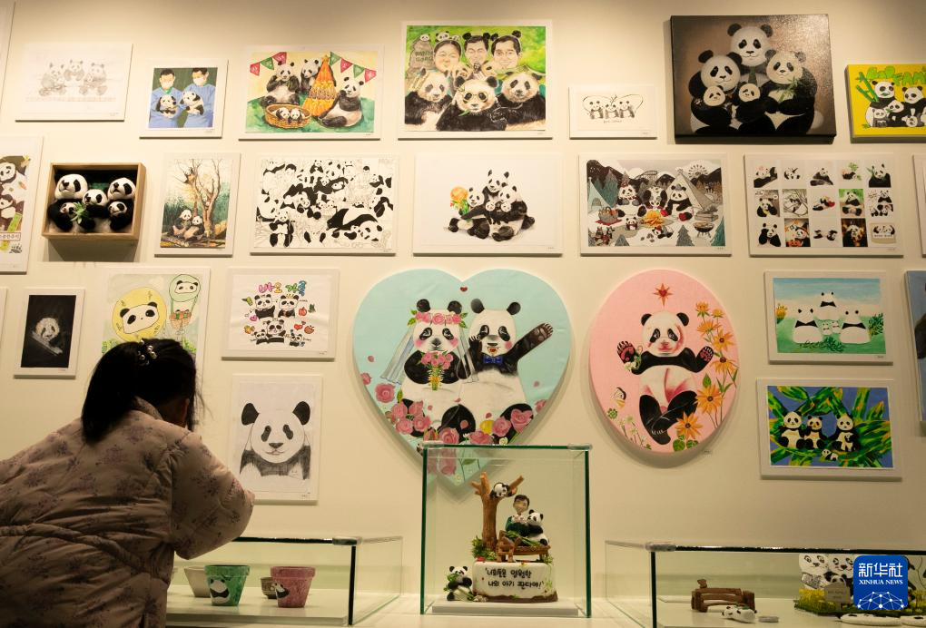 2月20日,小朋友在看福宝家族的创意作品。新华社记者 姚琪琳 摄