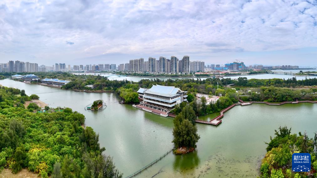 1月23日拍摄的厦门五缘湾湿地公园及周边城市景观(无人机全景照片)。新华社记者 姜克红 摄