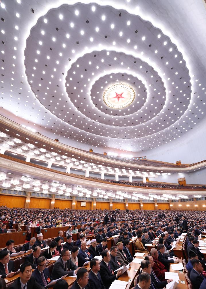 3月7日,全国政协十四届二次会议在北京人民大会堂举行第二次全体会议。这是委员们在认真听会。