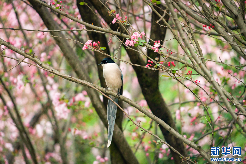 在花丛中栖息的鸟类(3月9日摄)。新华网发(郑益 摄)