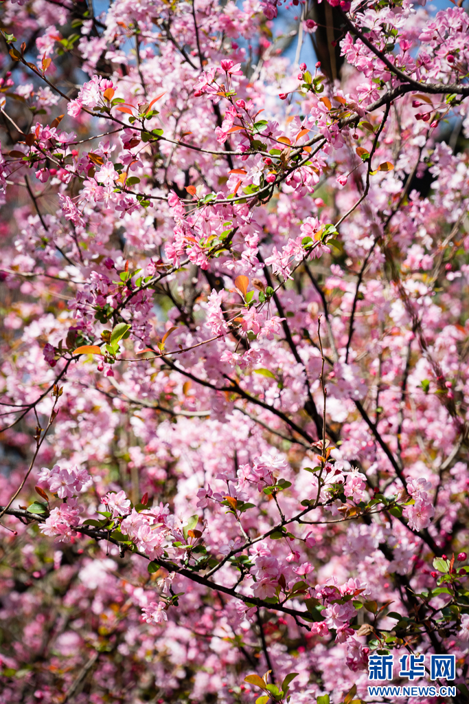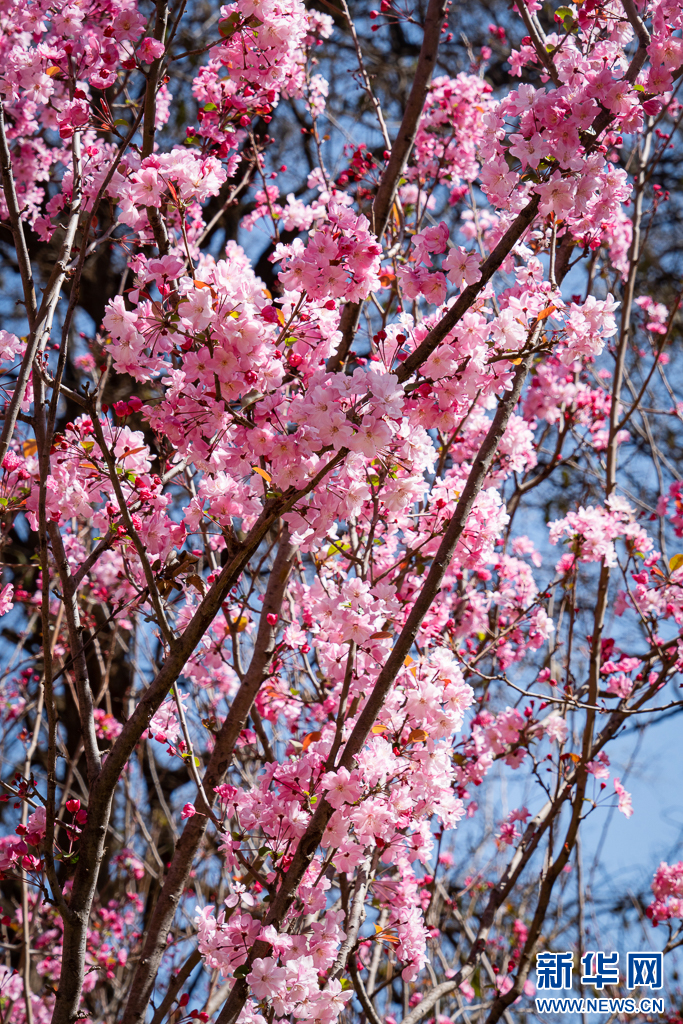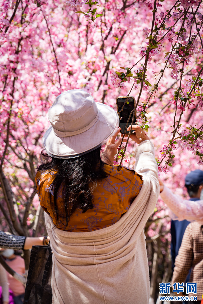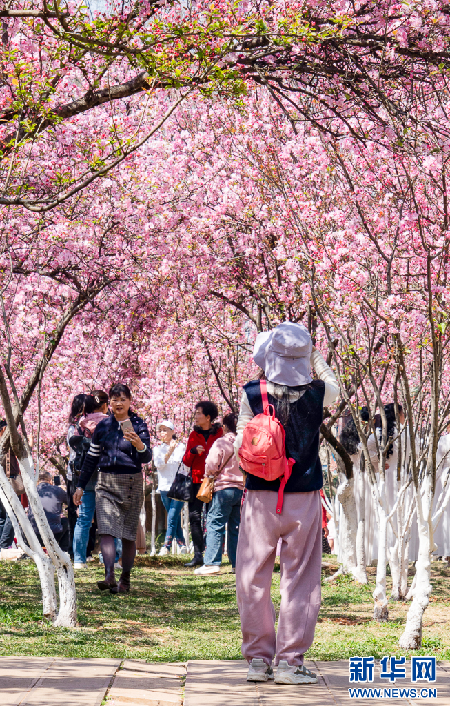 近日,云南省昆明市圆通山的樱花和海棠相继绽放,吸引大批游客前来踏春赏花。“圆通樱潮”是昆明极具代表性的赏花品牌,园内共种有2000余株精心培育的樱花和海棠,整个花期持续1个月时间。
