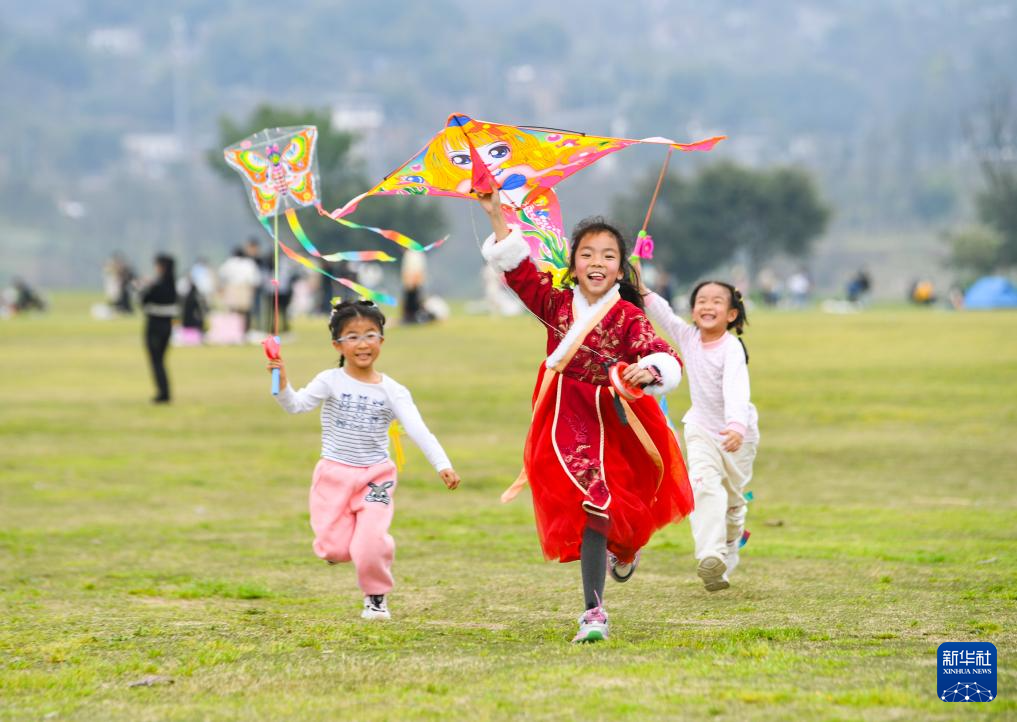 3月16日,小朋友在重庆广阳岛东岛头玩耍。新华社记者 王全超 摄