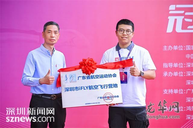 开幕式现场,广东省航空运动协会授予深圳iFly“航空飞行营地”牌匾。 这也标志着深圳iFLY未来将担负起室内跳伞训练基地的重担。