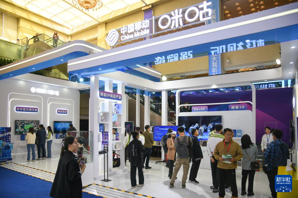 3月28日,人们在第十一届中国网络视听大会“新技术与精品节目展”展厅参观。新华社记者 胥冰洁 摄