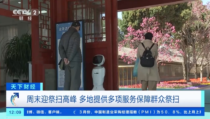 民政部要求,清明期间,各地民政部门要落实专人值班和祭扫情况日报告制度,各殡葬服务机构要通过增设服务窗口、延长服务时间等方式,满足群众祭扫需求。在北京八宝山革命公墓,今年清明节新增了智能机器人进行墓区安全巡查和为市民提供业务咨询等服务。