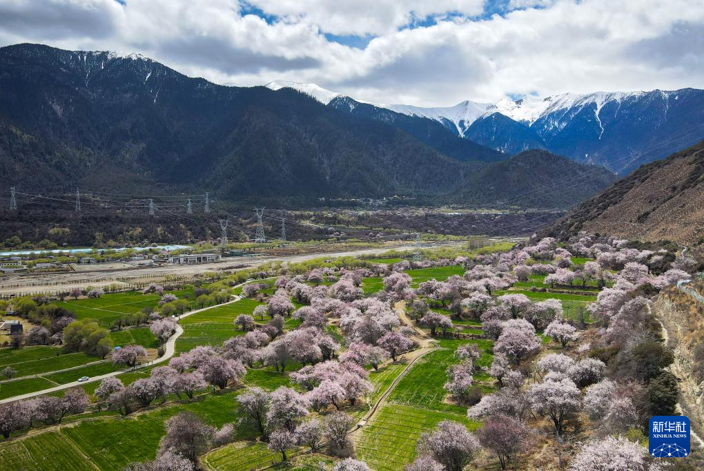 林芝市巴宜区朵当村盛开的桃花(3月30日摄,无人机照片)。当日,西藏林芝市第二十一届桃花旅游文化节开幕,各类活动精彩纷呈,吸引众多游客。新华社记者 丁增尼达 摄