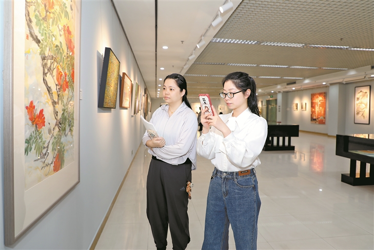 嘉宾、市民参观第五届“岭南之春”美术名家作品邀请展。