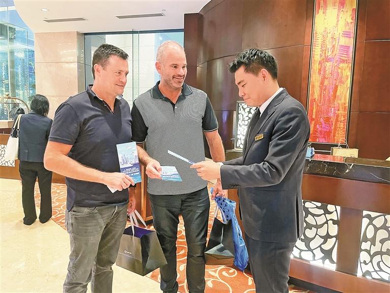 福田香格里拉酒店为外宾派发《国际友人“深”游指南》。 (受访酒店供图)