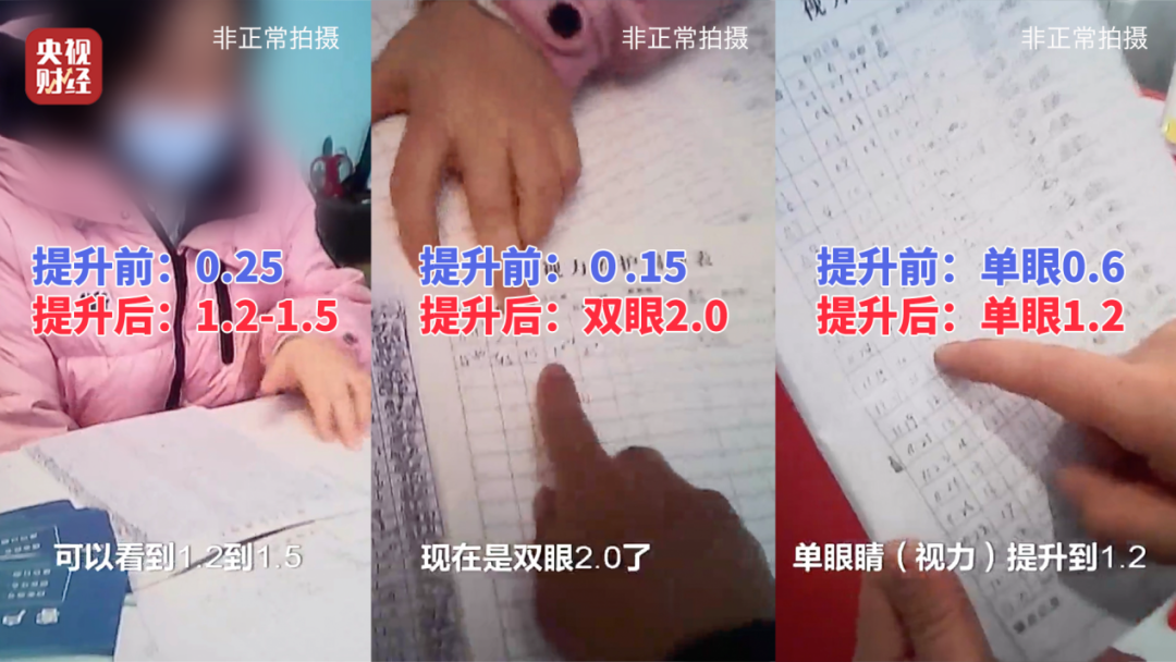 《财经调查》的记者发现,有一家专做视力提升生意的连锁机构对外声称他们可以让孩子们不打针、不吃药、不手术,仅仅用他们研制的“神药”“神奇的仪器”进行眼部按摩、涂抹、雾化,就能帮助孩子提升视力、轻松摘掉眼镜。
