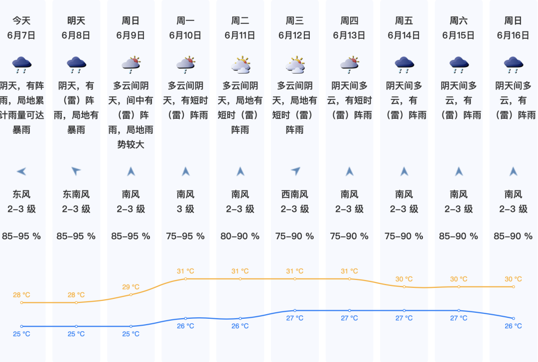 展望未来几天,8日阴天间多云,阵雨频密,雨势较平缓,累计雨量局地可达暴雨;9日间中仍有(雷)阵雨,局地雨势较大;10日起阳光增多,局地有短时阵雨。