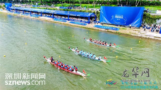 龙华赛龙舟习俗由来已久,距今有180余年的历史,观澜河龙舟赛是龙华区在历年端午期间举办的一项大型群众性文化体育活动,也是龙华区特色体育品牌赛事之一。该项赛事自2012年起已成功举办8届,于2017年荣获“深圳市十大本土品牌赛事”称号,并获得2023年深圳市“十大特色体育赛事”。