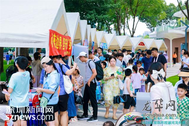 据悉,为推动“文体旅商”深度融合,今年龙华区在赛场外围设置了市集摊位,以招商引资形式联动本土企业与旅游资源吸引涵盖体育娱乐、住宿餐饮、旅游景点等领域的10家企业共同焕发赛事经济引力。摊位中,还有主办方设计的特色文创套盒,套盒以“龙”为主元素,设计龙牌、龙链、龙章、龙糕、龙扇。精美的龙舟文创品吸引了许多市民游客驻足。