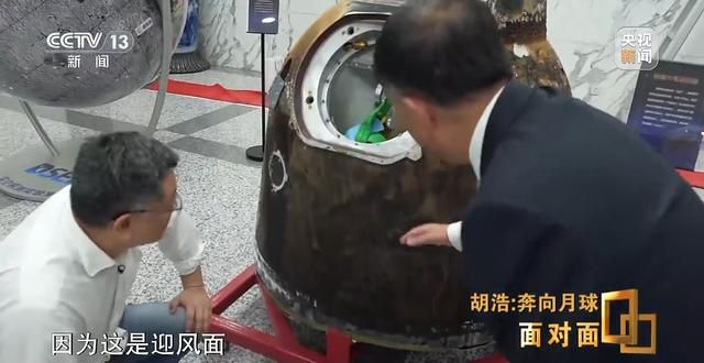 嫦娥六号任务总设计师胡浩:这些都是烧蚀的,因为是迎风面,我们这次因为路程短了,嫦娥五号跑了6500公里,这个只有5600公里,路程短了,烧蚀量速度还是这么快,所以烧蚀得比嫦娥五号厉害。