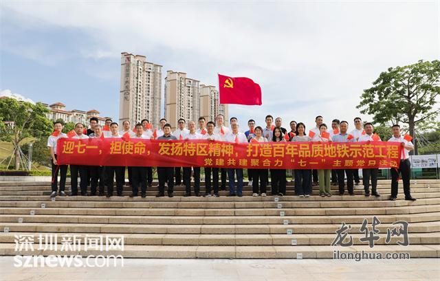 本次共建活动以“迎七一,担使命,发扬特区精神,打造百年品质地铁示范工程”为主题,各方党员首站在北站西广场进行调研,听取中铁建大桥局关于项目重难点的汇报;随后来到深圳北站社区党群服务中心参观学习,在讲解员的带领下,深入学习了中国共产党党史以及深圳市基层党建的亮点案例。活动最后,全体党员重温入党誓词,在党旗前庄严宣誓,坚定理想信念,充分汲取奋进前行力量。