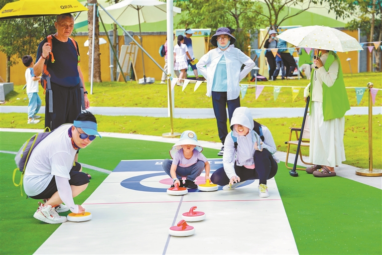 亲子展开“冰壶对决”。
