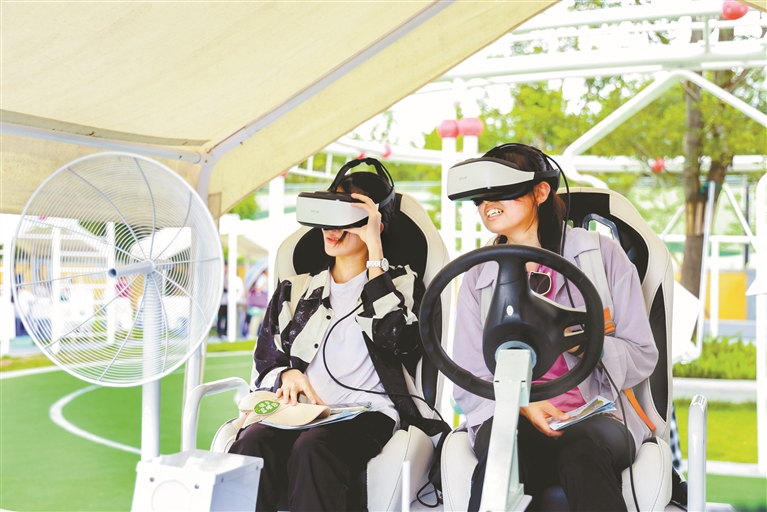 科技爱好者体验VR月球车。