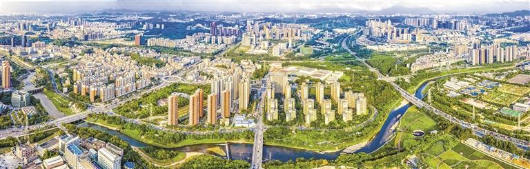 龙华积极推动高品质现代化城区建设。图为观澜河流经生机勃勃的龙华区。(资料图片)
