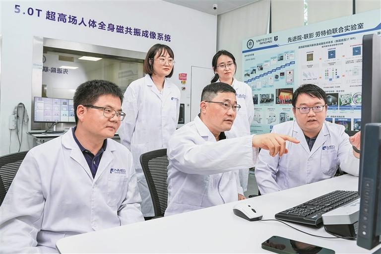 在国创中心牵头下,一批关键共性技术迅速得到突破。2023年,经中心与汉诺医疗、中国科学院深圳先进技术研究院、迈瑞医疗联合攻关,我国首台国产ECMO产品(俗称“人工肺”)研制成功,并在当年1月获批上市。该产品填补了国内长期空白,成为我国高端医疗装备发展的重要里程碑。除此之外,针对我国高端医疗设备严重依赖进口,创新产品较国外仍存在差距的现实情况,国创中心联合股东单位联影医疗和中科院深圳先进院,研制成功联影5.0T人体全身医学磁共振成像系统,于2022年8月获国家医疗器械注册(NMPA)审批,成为国际上率先突破的超高场人体全身功能磁共振成像产品,填补了国际上超高场人体全身磁共振成像设备空白。