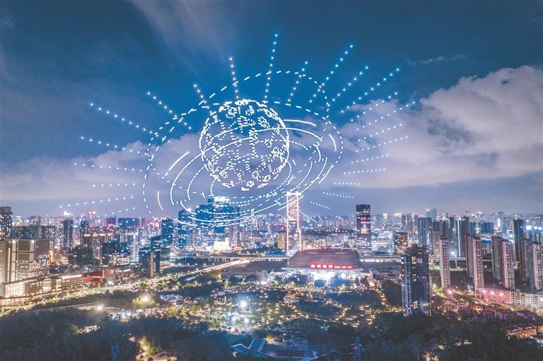 民治街道本土企业大漠大智控的无人机编队表演点亮城市夜空,成为了低空经济蓬勃发展的缩影。