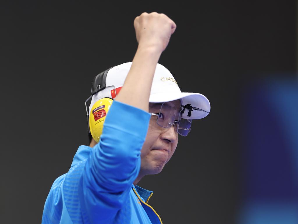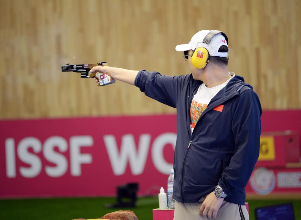 2023年8月22日,在阿塞拜疆巴库举行的世界射击锦标赛中,李越宏获得男子25米手枪速射冠军。新华社发(巴巴耶夫 摄)