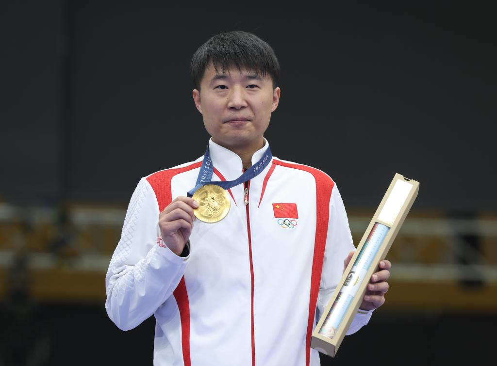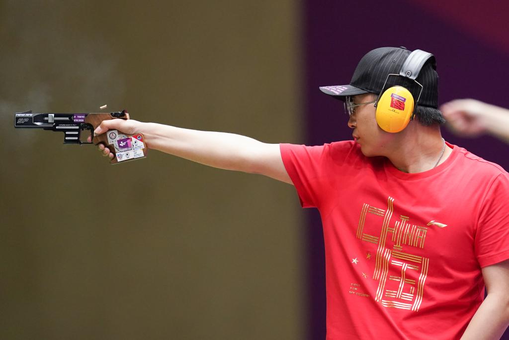 2021年8月2日,在东京奥运会男子25米手枪速射决赛中,李越宏获得铜牌。新华社记者 鞠焕宗 摄