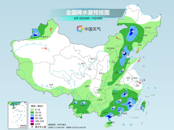 后天,内蒙古中东部、东北地区西部、新疆西北部、河北大部、华北东部、黄淮中西部、江南大部、云南、华南大部、台湾岛等地部分地区有中到大雨,其中,内蒙古东部、新疆伊犁河谷、河北中部、天津、江西北部、福建南部、广西东南部沿海、广东西南部和中部、台湾岛南部等地局地有暴雨。