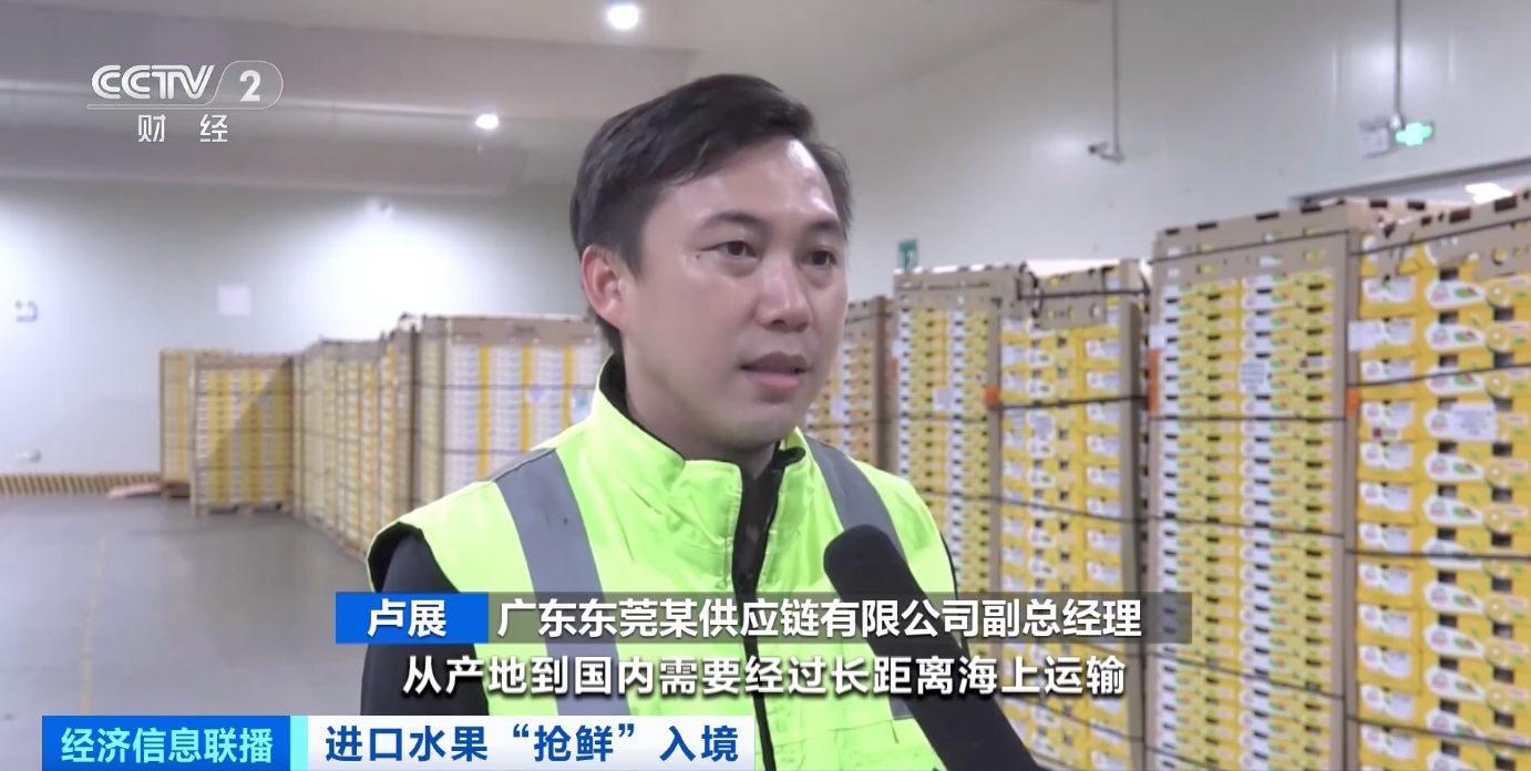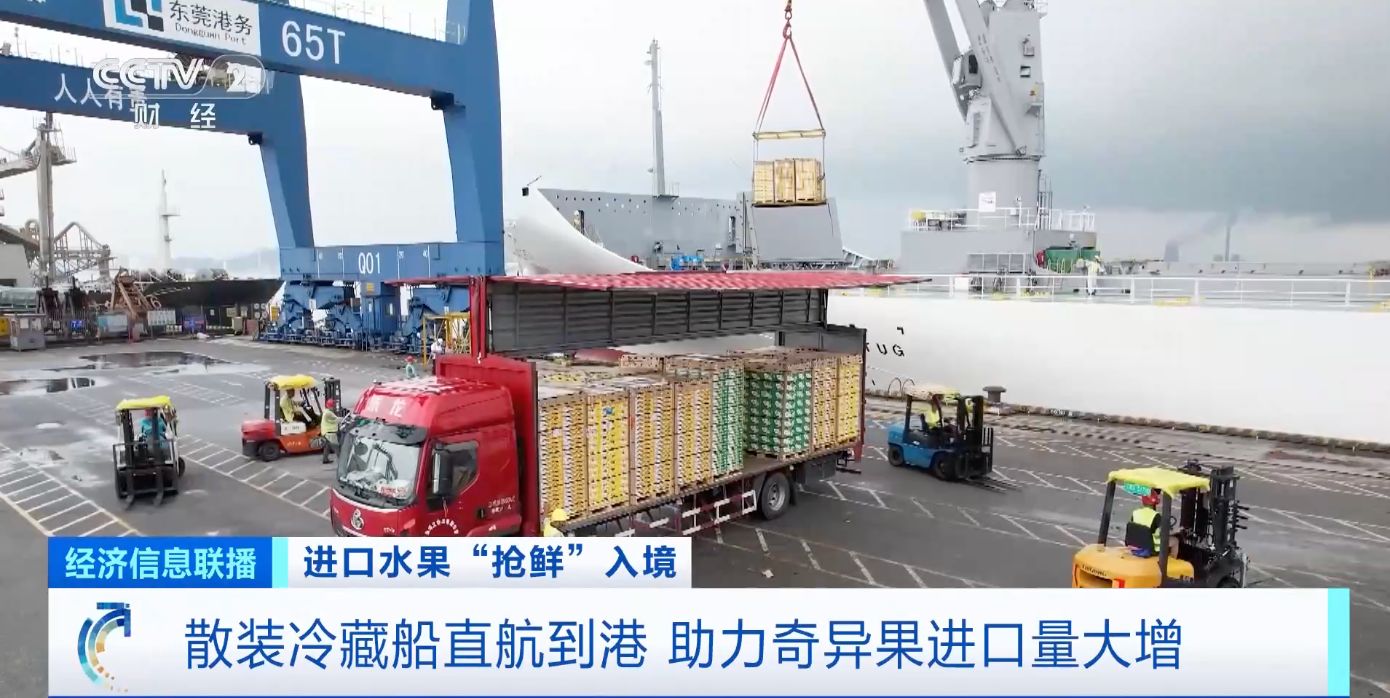 广东东莞某供应链有限公司副总经理 卢展:奇异果价值相对较高,从产地到国内需要经过长距离的海上运输,对物流供应链要求非常严格。直航散装冷藏船比传统集装箱运输节省约20%到30%的时间。
