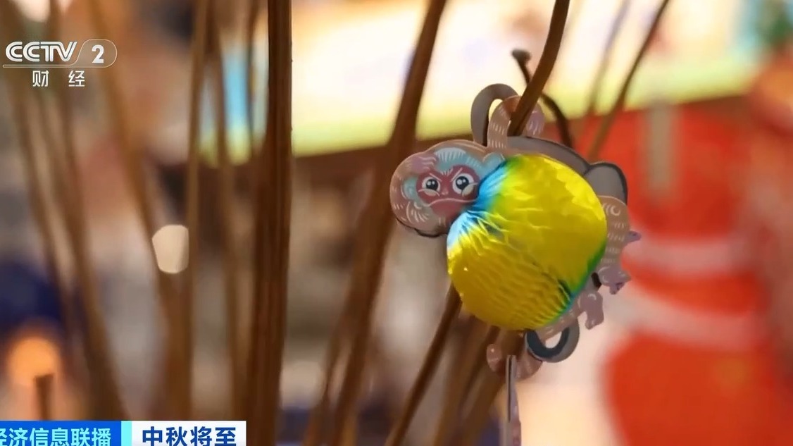 除了造型和口味主打“国潮风”,不少月饼的外包装也“国风”满满。在杭州余杭瓶窑老街的一家店里,“金猴揽月”联名礼盒吸引不少人注意。打开内配的玩具材料套装,一贴、一挂,就能拥有一盏精致的翻花灯,上面几只小猴子抱团“捞月”,趣味十足。