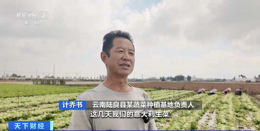云南陆良县某蔬菜种植基地负责人 计乔书:近日,意大利生菜每天都有50吨的采收量,除了正在大量成熟上市的意大利生菜和包菜,基地种植的油麦菜、娃娃菜和大白菜等也将陆续上市,能够确保每个月有1500吨的新鲜蔬菜上市。