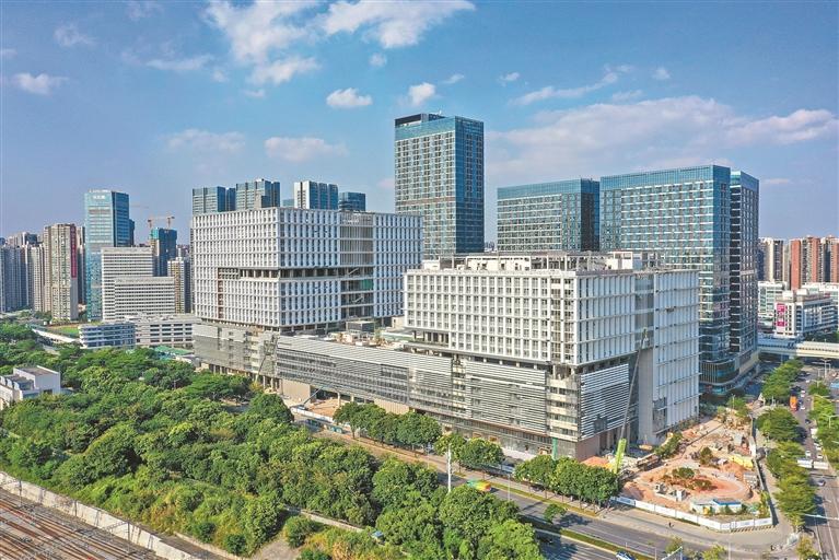路过红山地铁站,作为深圳“新时代十大文化设施”的深圳美术馆(新馆)和深圳图书馆北馆交相辉映。2023年底,它们相继落成启用,成为全民阅读的文化阵地。与龙华“两馆”相隔不到百米,集颜值和科技感于一身的龙华城市客厅自2022年5月开放以来,已成为新的“网红打卡地”。新华医院、深圳市第二儿童医院也都完成主体建设,距离启用进入“倒计时”。