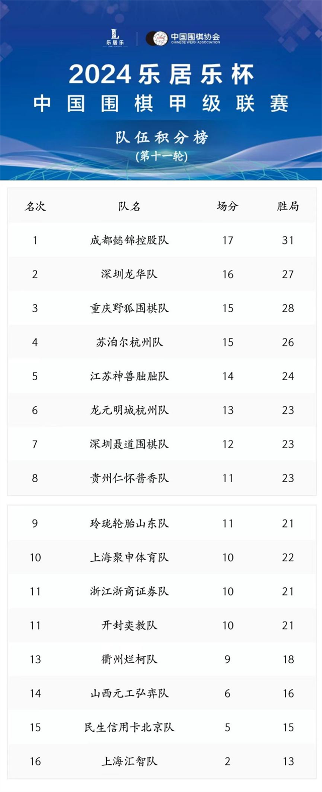 2024“乐居乐杯”中国围棋甲级联赛第十一轮